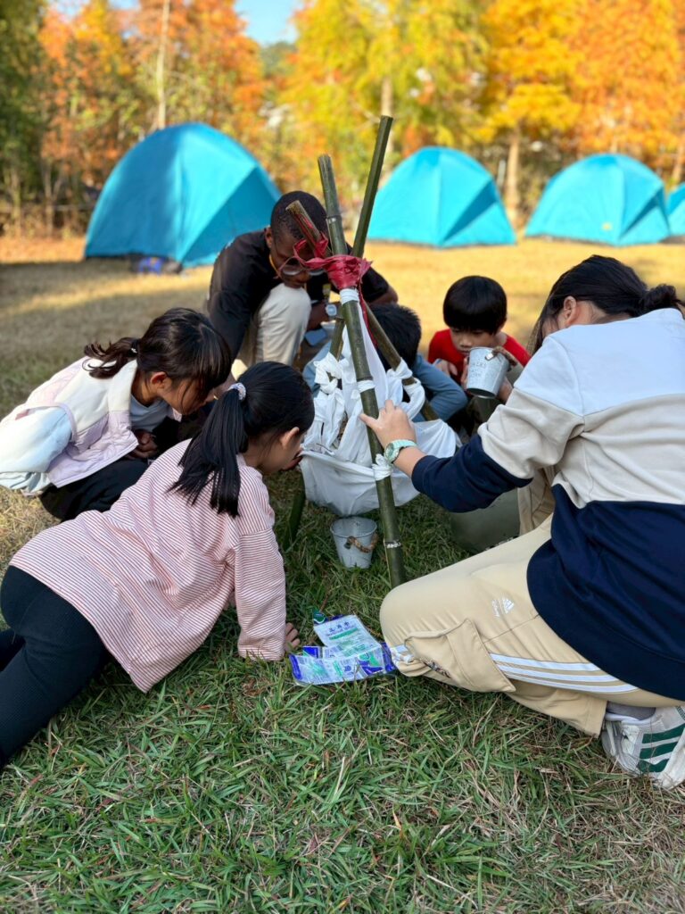 營隊本身有清楚的師生比例規劃,如果年紀較小的孩子比例增加,也會同步增加老師人數。活動設計不是用年齡硬切,而是透過跨年齡互助的方式進行。年紀大的孩子學習帶領與照顧,年紀小的孩子在支持中完成挑戰。實際經驗中,小一點的孩子反而常常因為被接住,而走得比我們想像中更穩。