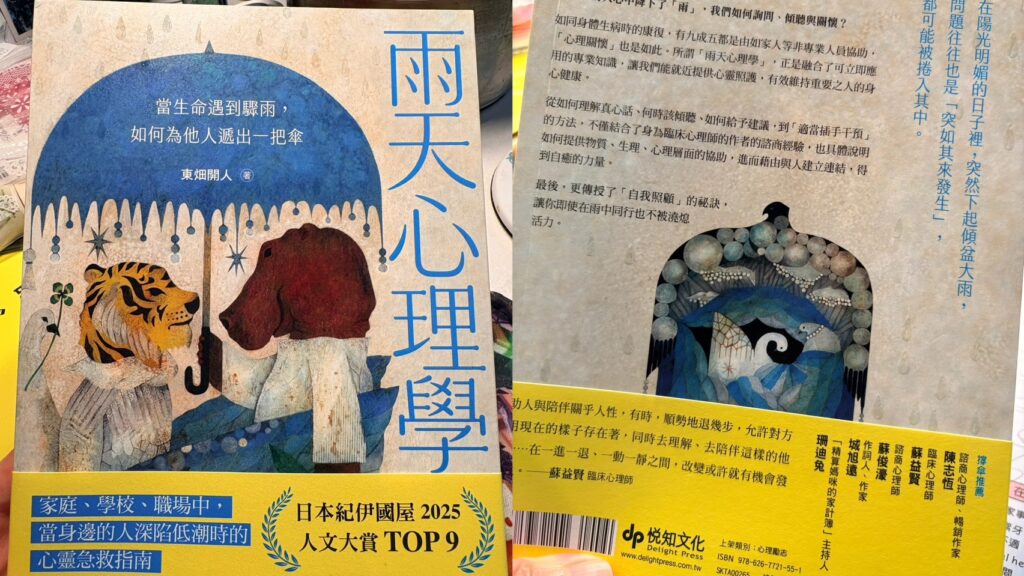 就在前陣子,我接收到悅知出版社的邀請,掛名推薦一本極具意義的書,《雨天心理學》一堂為非專業陪伴者所設計的書籍,一直以來邀請我掛名的書籍都是理財書籍或是親子教養書籍,第一次有心理支持的書請我擔任掛名推薦人。
