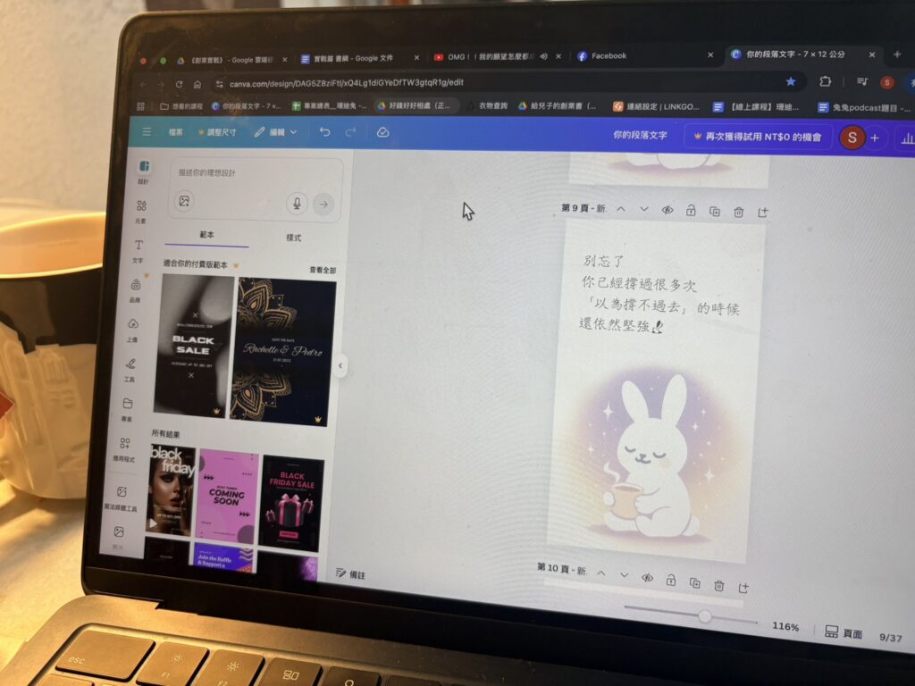 我這次寫文的方式就是產生有感的文字之後,默念三次閉上眼睛感受,有感就留下,無感就刪除,我明白每個人的人生故事不同也許共感的句子也會不一樣,但至少這幾句有感動到我,我沒有想要留那種湊篇幅的文字,每句話都不知道改了多少次,最後再用 Canva 進行編輯。